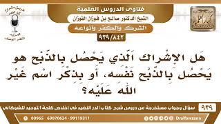 [842 -939] هل الإشراك الذي يحصل بالذبح هو يحصل بالذبح نفسه، أو بذكر اسم غير الله عليه؟