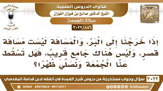 [846 -3022] إذا خرجنا إلى البر مسافة ليست بقصر، وليس هناك جامع قريب، فهل تسقط عنا الجمعة ونصلي ظهرا؟