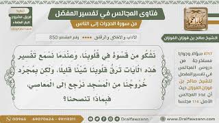 [850- 4717] لماذا ترق القلوب عند درس التفسير ثم إذا خرجنا من المسجد نسينا.!! - الشيخ صالح الفوزان
