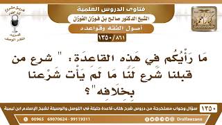 [861 /1350] ما رأيكم بقاعدة: "شرع من قبلنا شرع لنا ما لم يأت شرعنا بخلافه"؟ الشيخ صالح الفوزان