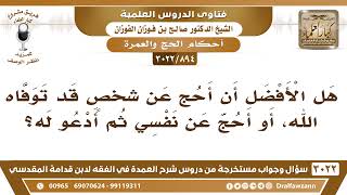 [894 -3022] هل الأفضل إن أحج عن شخصٍ قد توفاه الله، أو أحج عن نفسي ثم أدعو له؟ - الشيخ صالح الفوزان