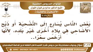 [910 -3022] ما حكم ذبح الأضاحي في بلادٍ أخرى غير بلده، لأنها أرخص سعرا؟ - الشيخ صالح الفوزان