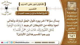 تفسير جيد اما هذه هاتان الايتان ففيهما وصف ذلة الوجوه لله جل وعلا وعانت الوجوه للحي القيوم وقد خاب من حمل ظلما اي ذلة الوجوه له الوجوه دليلة دائمة لكن - 00:01:39ضَ
