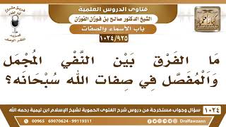 يقول فضيلة الشيخ وفقكم الله ما الفرق بين النفي المجمل والمفصل في صفات الله سبحانه ما فيه نفي مفصل نفي كله مجمل ليس كمثله شيء فلا تضربوا لله الامثال ما في مجمل. اما الاثبات - 00:00:00ضَ