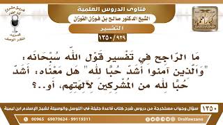 [929 /1350] في قوله تعالى "والذين آمنوا أشد حبا لله" هل معناه: أشد حبا لله من المشركين لآلهتهم؟