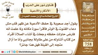 اقرأه من كتاب اتناوله من على طاولة بجانبي وانا ما ازال متجه الى القبلة. فهل هذا جائز؟ اولا ليس بفرق دعاء القنوت ليس بفرض وقراءتك من ورقة ايضا ليست بمحرمة - 00:00:13ضَ