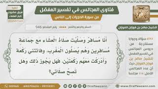 [946- 4717] هل يقصر المسافر العشاء إذا صلاها خلف من يصلي المغرب؟ - الشيخ صالح الفوزان