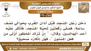 [984 /1350] دخل رجل المسجد قبيل المغرب فصلى تحية المسجد، فأنكر عليه أحدهم وقال "ترك المحظور أولى.."