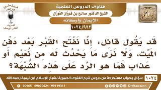 يقول فضيلة الشيخ وفقكم الله قد يقول قائل انا نفتح القبر بعد دفن الميت ولا نرى ما يحدث له من نعيم او عذاب فما هو الرد على هذه الشبهة؟ الرد عليها واضح انت في الدنيا وهو في الاخرة الميت في الاخرة - 00:00:00ضَ