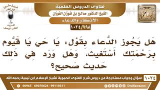 [998 -1024] هل يجوز الدعاء بقول: (يا حي يا قيوم برحمتك أستغيث)، وهل ورد في ذلك حديث صحيح؟
